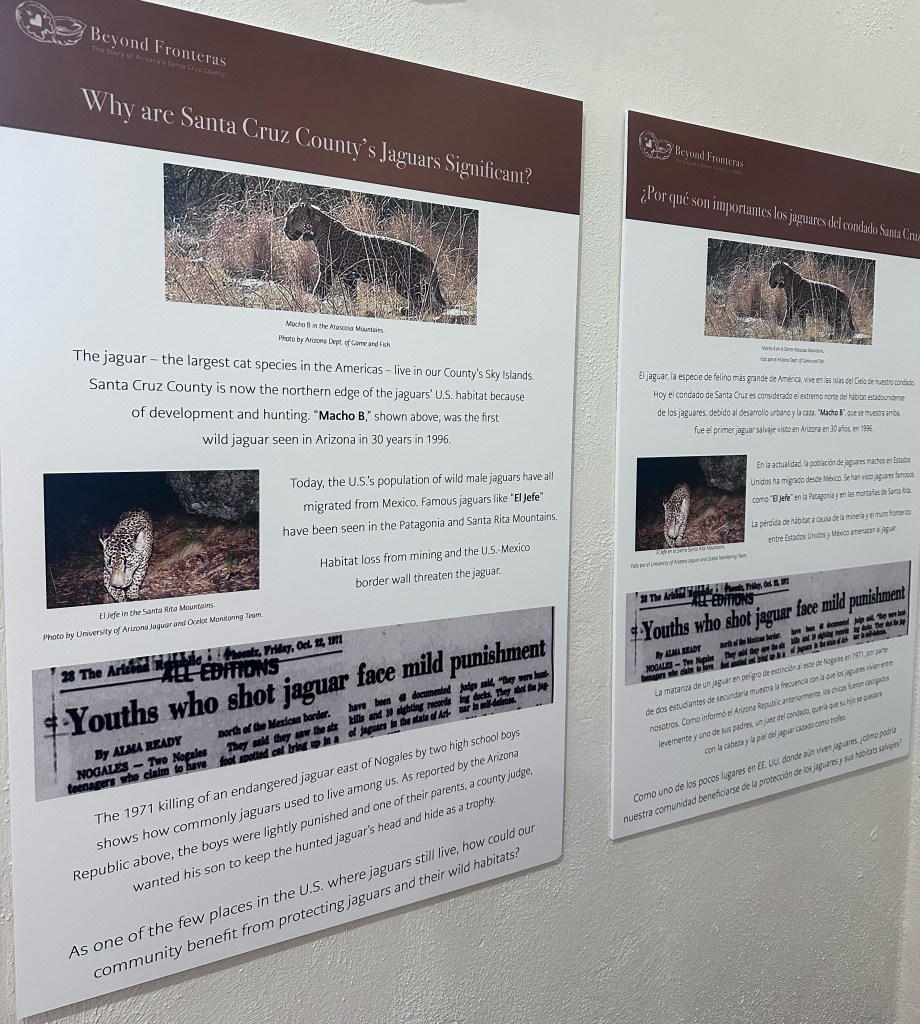 Dr. Parra and I worked with the undergraduate students for about 6 weeks. Their research pulled from primary sources as much as possible and resulted in beautiful, bilingual exhibit boards like the one on the Jaguar by junior history major, Gabby Vanover (pictured below).